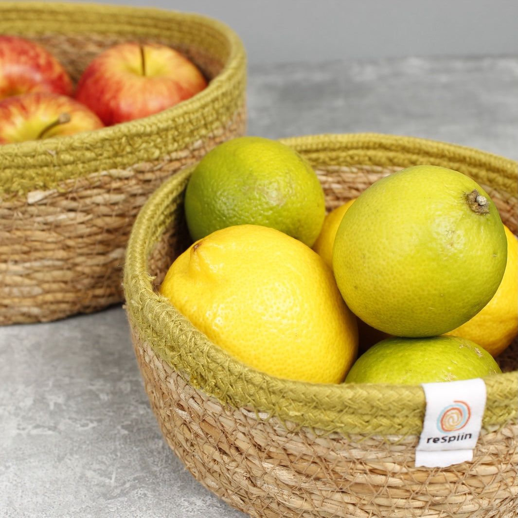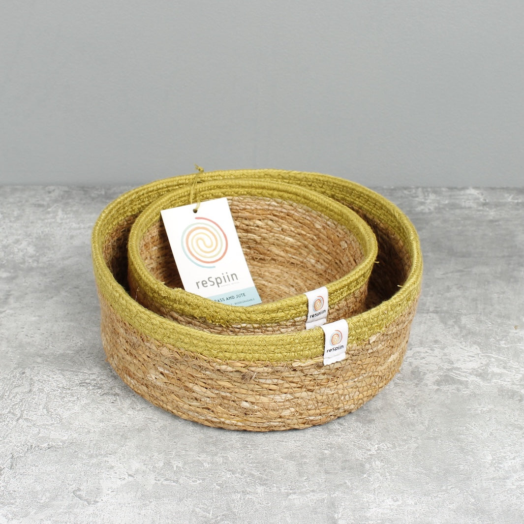 Seagrass & Jute Shallow Basket Set of 2 - Natural/Green