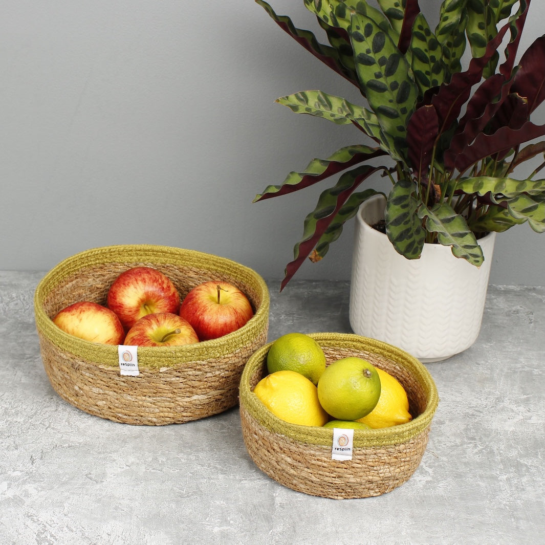 ReSpiin storage baskets and bowls are made from sustainable, durable materials including jute, seagrass and upcycled saris. They are perfect for storage, key bowls, organising toys or just adding a splash of colour round the home.