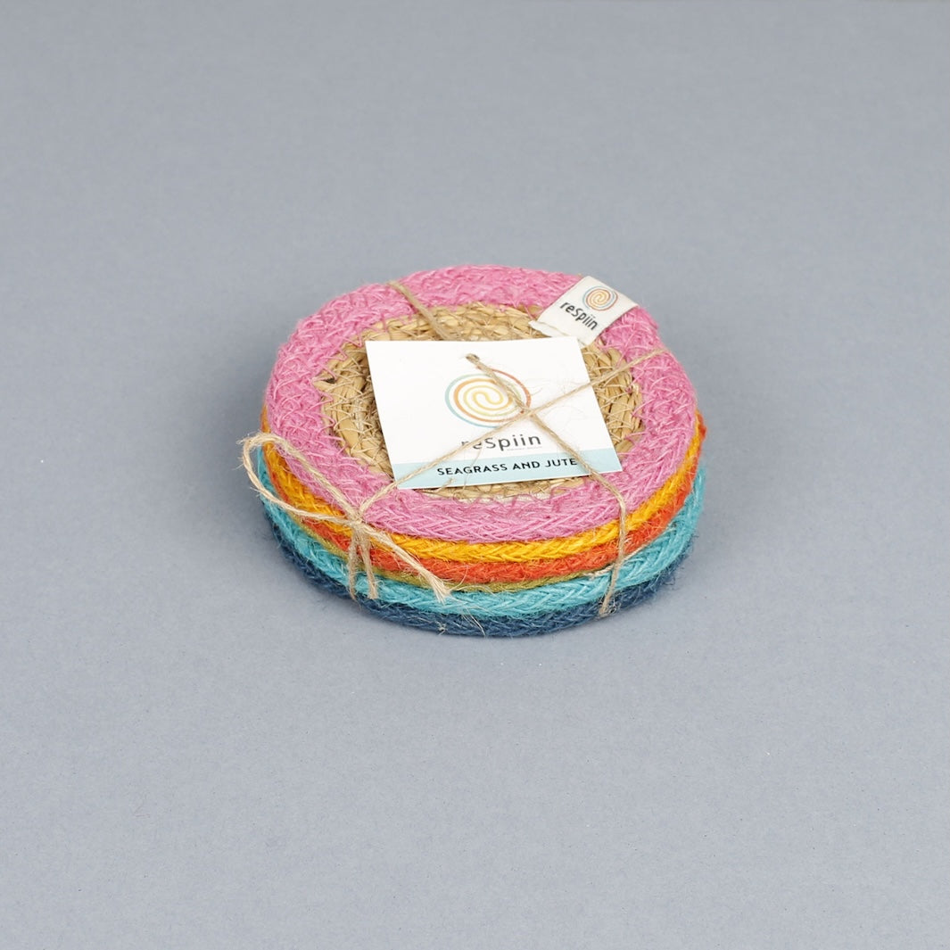 Set of 6 Seagrass & Jute Coasters - Rainbow