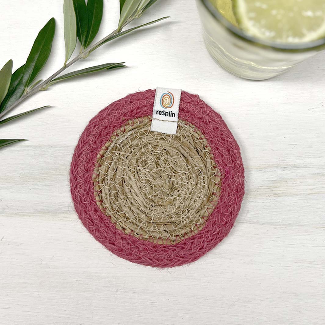 Set of 6 Seagrass & Jute Coasters - Natural/Pink